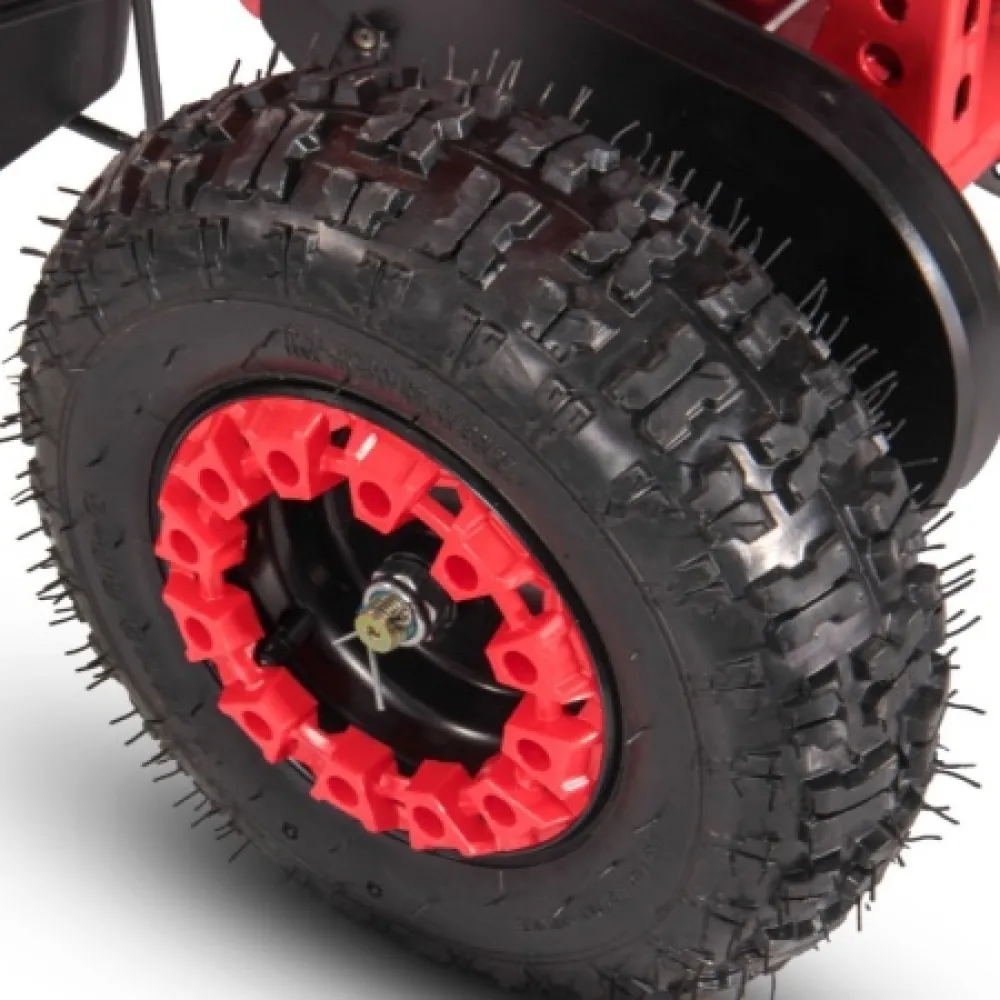 Электроквадроцикл устойчивый на ровной поверхности. Дает возможность максимального разгона, начального понимания скорости и участии в дорожном движении наравне с остальными райдерами. При мощностных параметрах электродвижка 1000 Вт максимальная скорость разгона достигает 25 км/час. Электроквадроцикл оснащен большой светодиодной фарой, разрешающей езду и развлечение подрастающего водителя в вечернее время и проблематичную погоду.