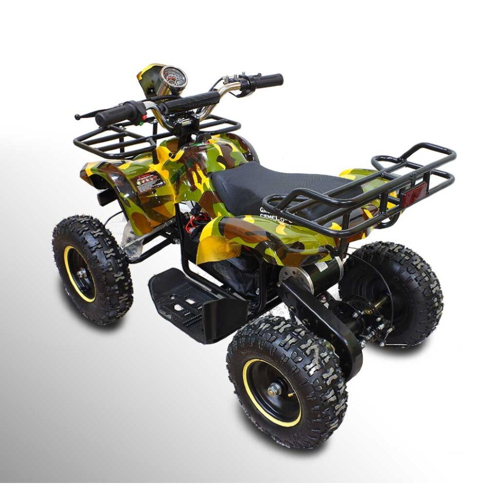 Расцветка данной модели называется «армейский жёлтый» – это сочетание ярких бойких цветов, которые нисколько не потеряют в глазах вашего ребёнка своей брутальности и крутости. Юный автолюбитель сразу полюбит этот квадроцикл.