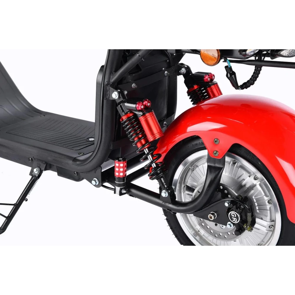 Электроскутер CityCoco WS Pro Max+ 3000W - обновленная версия полюбившейся модели индивидуального городского транспорта. Новинка получила ряд улучшений, благодаря которым каждая поездка станет еще более комфортной и приятной. Производители усовершенствовали переднюю и заднюю подвеску, повысив плавность хода при движении по различным типам дорожного покрытия. Задние амортизаторы теперь можно регулировать, подкачивая воздух. Мощный мотор обеспечивает впечатляющую скорость движения до 71 км/час, что сопоставимо со скоростью легкового автомобиля. При этом разгон происходит уверенно и плавно, без рывков. Электроскутер оснащен дополнительным сиденьем, что дает возможность водителю передвигаться вместе с одним пассажиром. Удобная платформа для ног водителя и эргономичные ручки руля обеспечивают максимальный комфорт во время поездки. Основные параметры движения отображаются на крупном электронном дисплее, который расположен по центру руля. Водитель легко может оценить набранную скорость или уровень заряда батареи. При полном заряде аккумулятор гарантирует запас хода до 65 километров. В темное время суток безопасность движения обеспечивает система освещения, в которую входит яркая передняя фара, задние габаритные огни поворотники.