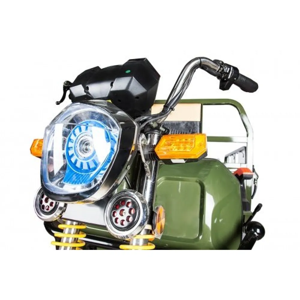Мощность модели составляет 1000 Вт, параметры бензогенератора -  60V 4500 Вт, объем бензобака – 10л. Тс не требует регистрации в контролирующих органов. Модель оснащена светодиодной фарой, брендовыми барабанными тормозами и другими современными аксессуарами. В электрорежиме максимальные скоростные характеристики грузового трицикла составляют 25 км/ч, которые позволяют проезжать до 30 км пути.