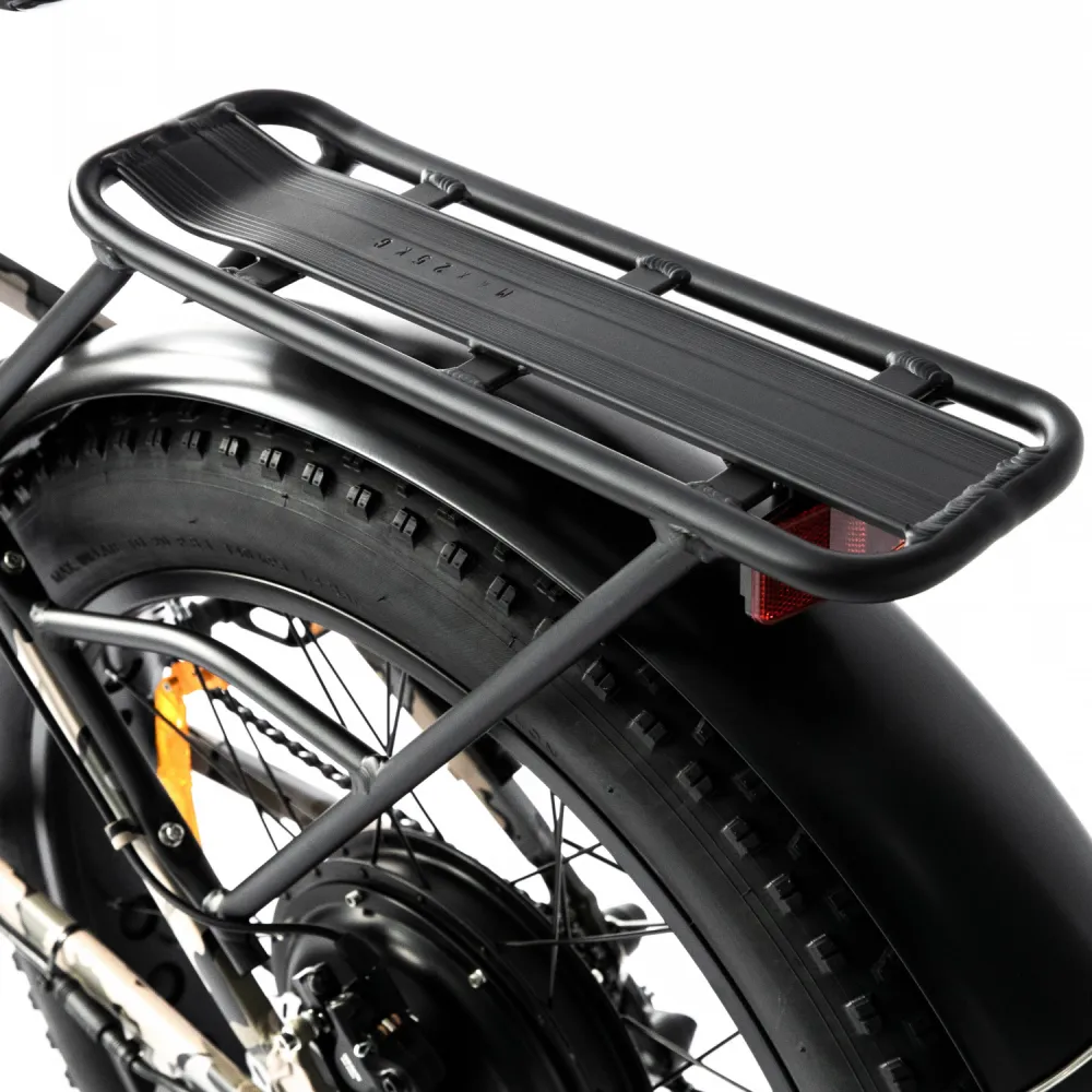 Техника имеет современное широкое сидение для комфортных длительных поездок. Возможность езды в смешанном режиме дает возможность свободно передвигаться в горной местности и по неровным дорогам. Аккумулятор заряжается быстро за 7-8 часов, существенно экономит время современного райдера. Рама имеет складную конструкцию, изготовлена из облегченного алюминия, при необходимости быстро трансформируется.