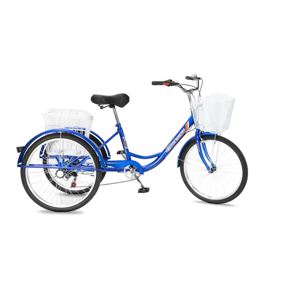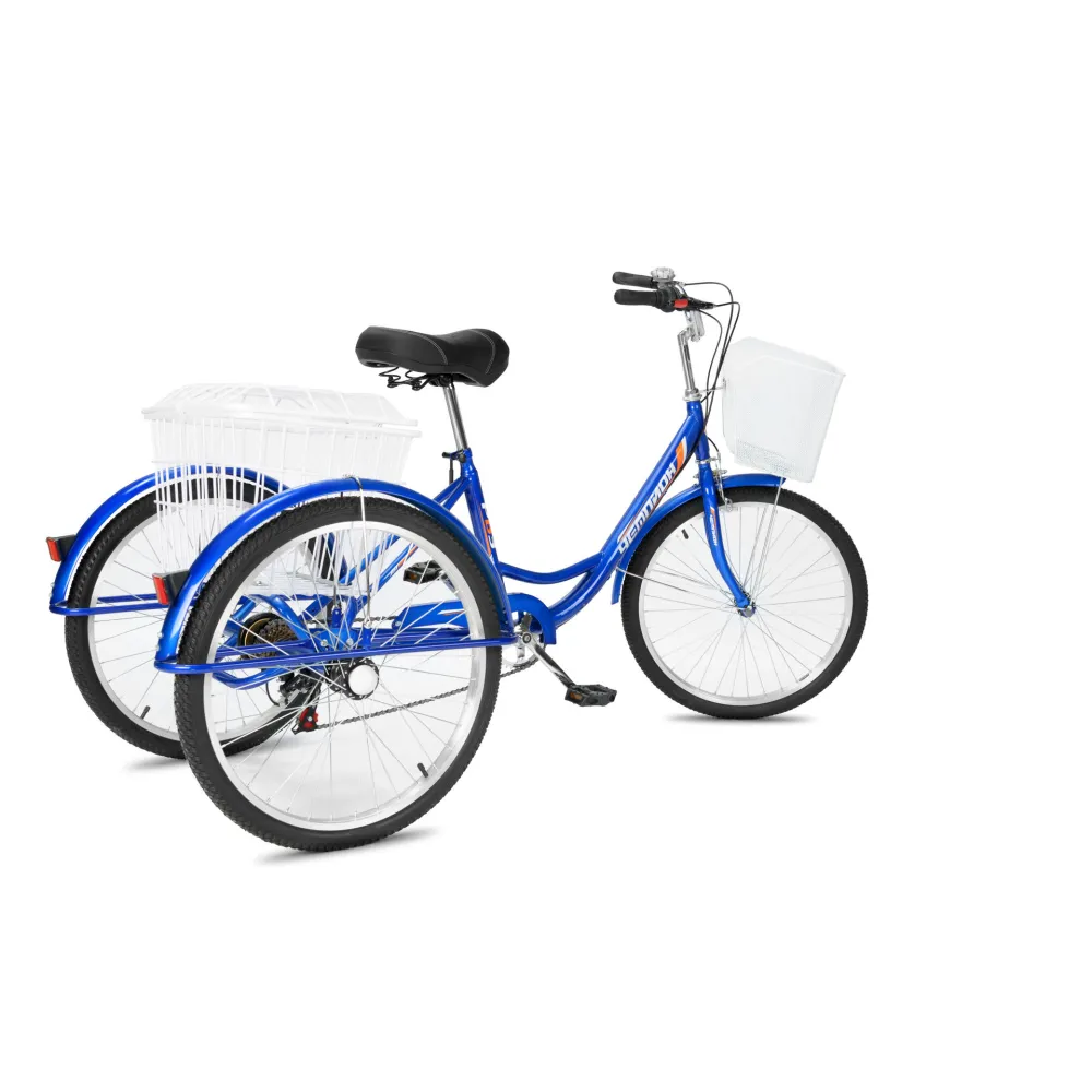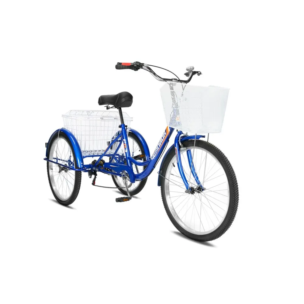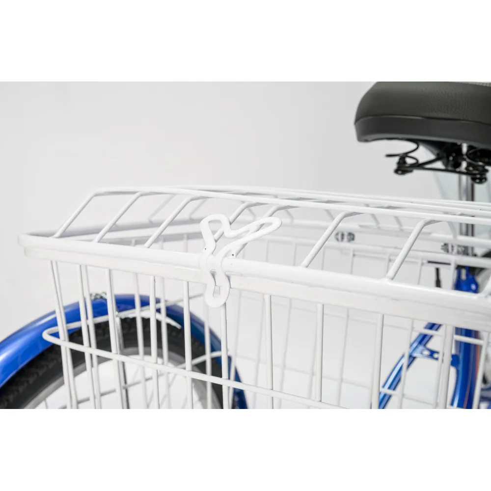 Модель представляет собой надежную конструкцию из прочной стали. Удобство и комфорт являются приоритетными для производителя. Фирменная тормозная система состоит из передних ободных и задних тормозов барабанного типа. Техника оснащена стальными усиленными корзинами для повышенной комфортности поездок. Резиновые накладки на руле не скользят, позволяют удобно располагать руки. Сидение широкое, анатомически правильной формы для езды без дискомфорта. Приятной неожиданностью станет подарок в виде насоса и набора ключей. Велосипеду обрадуется старшее поколение. Усиленные обода и спицы позволят без проблем передвигаться по дороге с неровностями.