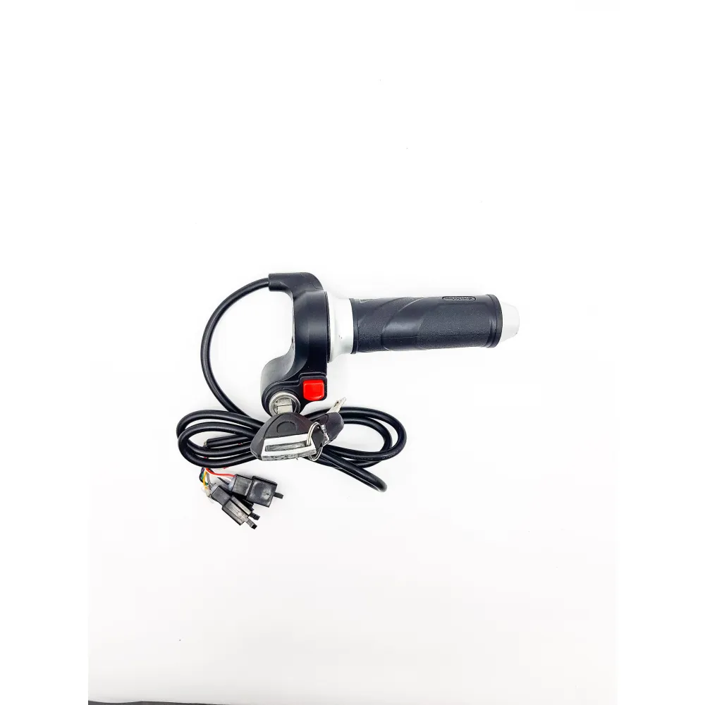 В комплекте: грипса (рукоятка), замок зажигания с ключем, кнопка переключения скорости, акселератор (газуля), шнур (кабель)